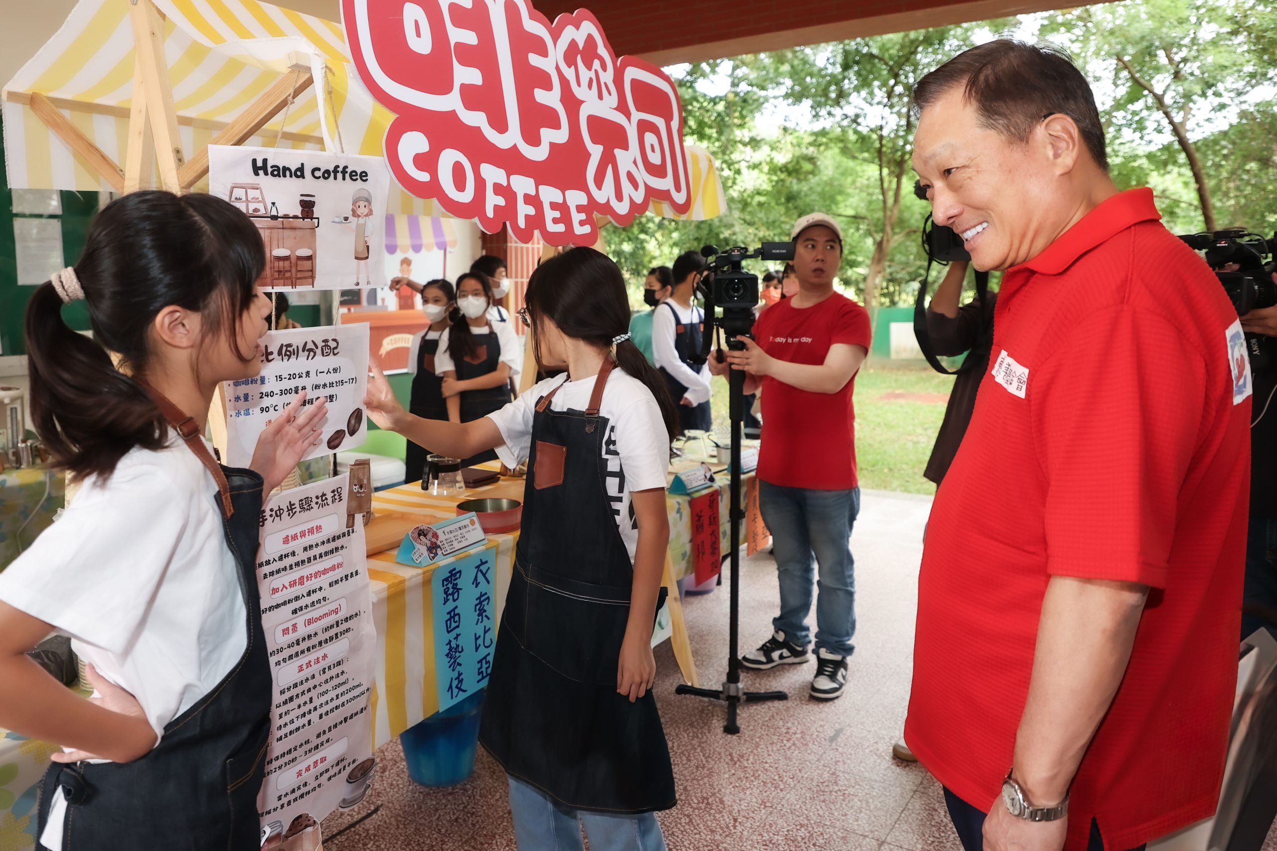 活動現場,戰鼓社與舞蹈社等社團學生分別以磅礴氣勢和優雅律動熱情迎賓,隨後更有六年級學生化身小小咖啡師,將「小小公益家」課程的成果展現給大家;去年8月在「東森盃海峽兩岸少年棒球邀請賽」拿下季軍的萬豐棒球隊,則是與東森棒球隊展開一場熱血的友誼交流賽,現場歡笑聲不斷,這一天,不只是公益活動,更像一場凝聚大手與小手的家庭日。萬豐國小校長陳厚仁表示,「謝謝東森爸爸,也謝謝東森會員們的愛心捐贈,讓學校有這麼多資源照顧孩子,補充營養、發展社團,給予孩子努力的成長動力。」