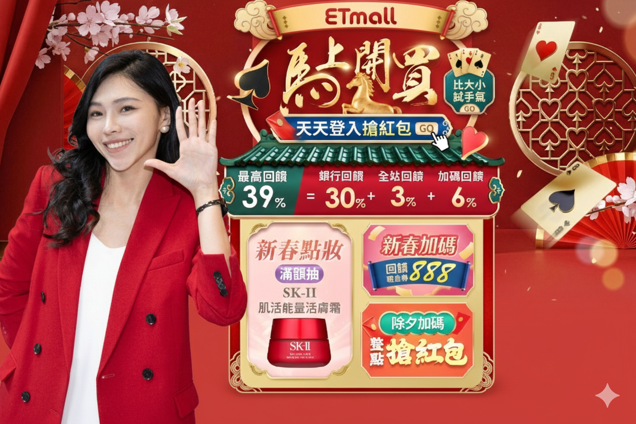 東森購物網ETMall自2月11日至2月22日推出全站「馬上開買」活動,春節期間天天紅包雨,整點開搶,中獎機率更是高達100%。最受矚目的「除夕限定搶紅包」將於 2 月16日當天 10:00至21:00 每整點準時開搶66枚樂透金,每時段皆有中獎機會;緊接著2月17日至2月22 日更有春節加碼紅包雨,最高可獲得 888 枚樂透金。此外,活動期間全站累積消費滿 2,500 元,最高可領取 888 枚現金券回饋;2月14日起更推出「新春比大小」趣味互動,讓民眾透過最高10倍押注樂透金挑戰樂透金2倍回饋,盡情享受試手氣的購物樂趣。